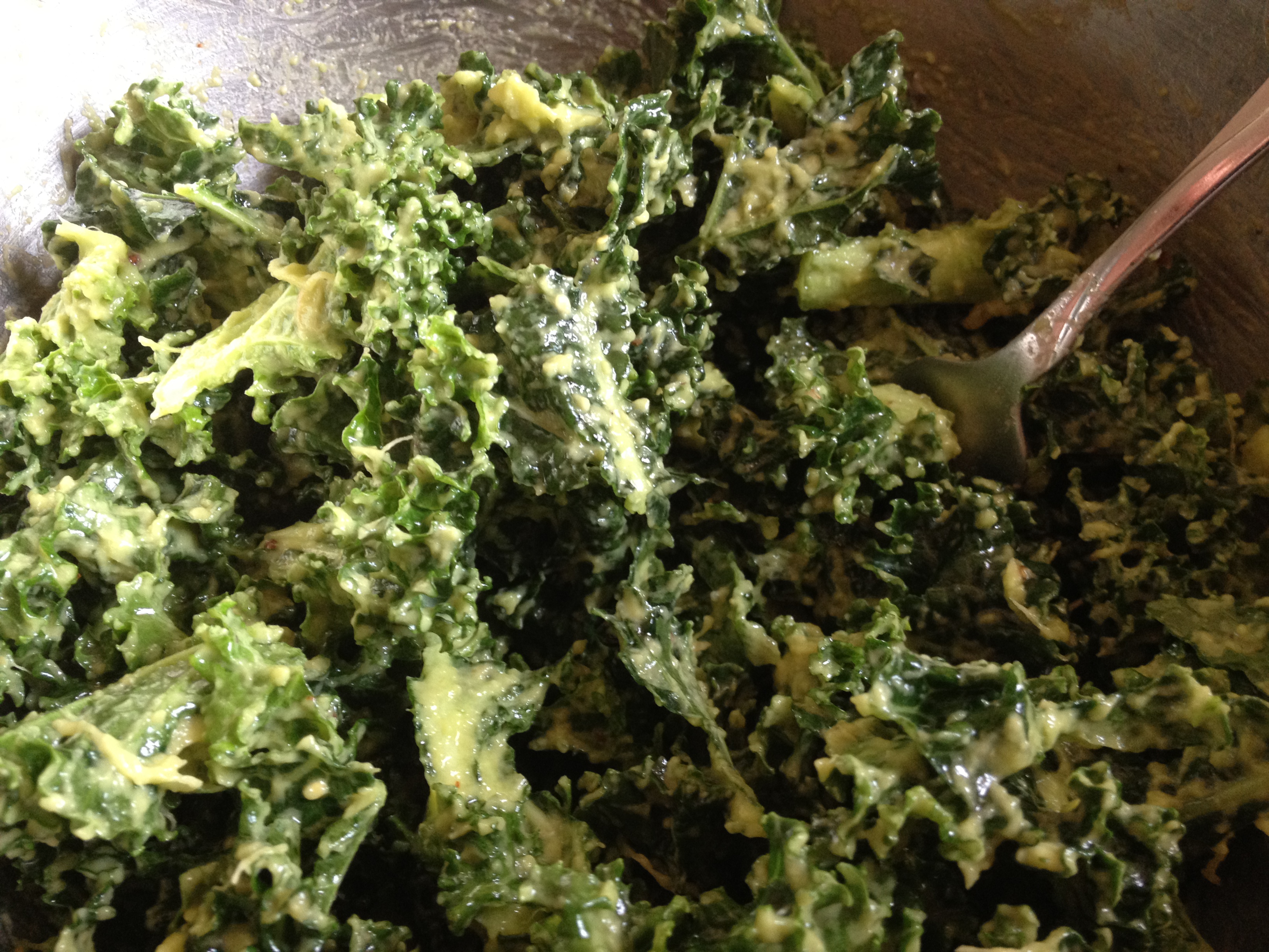 And, lastly, massaged Kale. Raw and mashed with avocado, salt, pepper, and a bit of lemon.